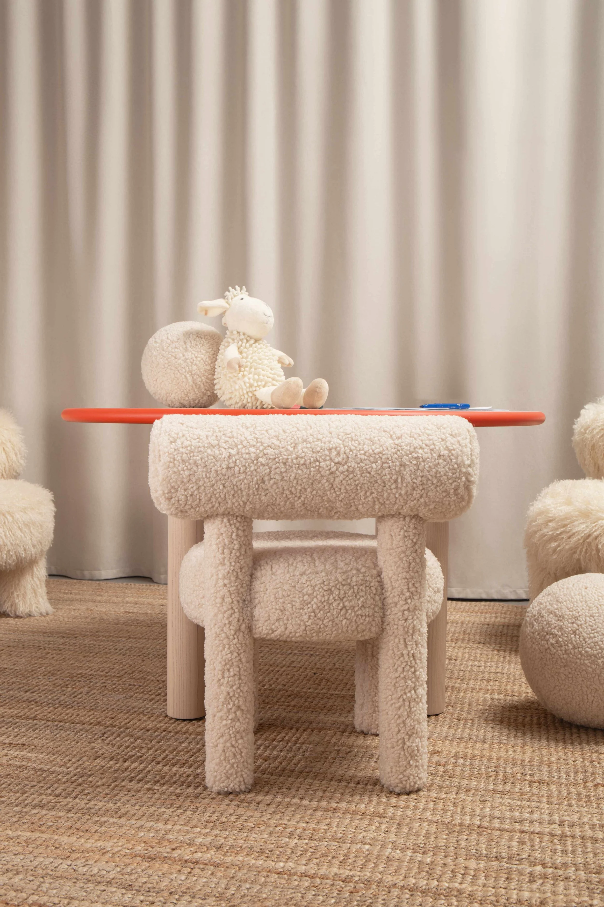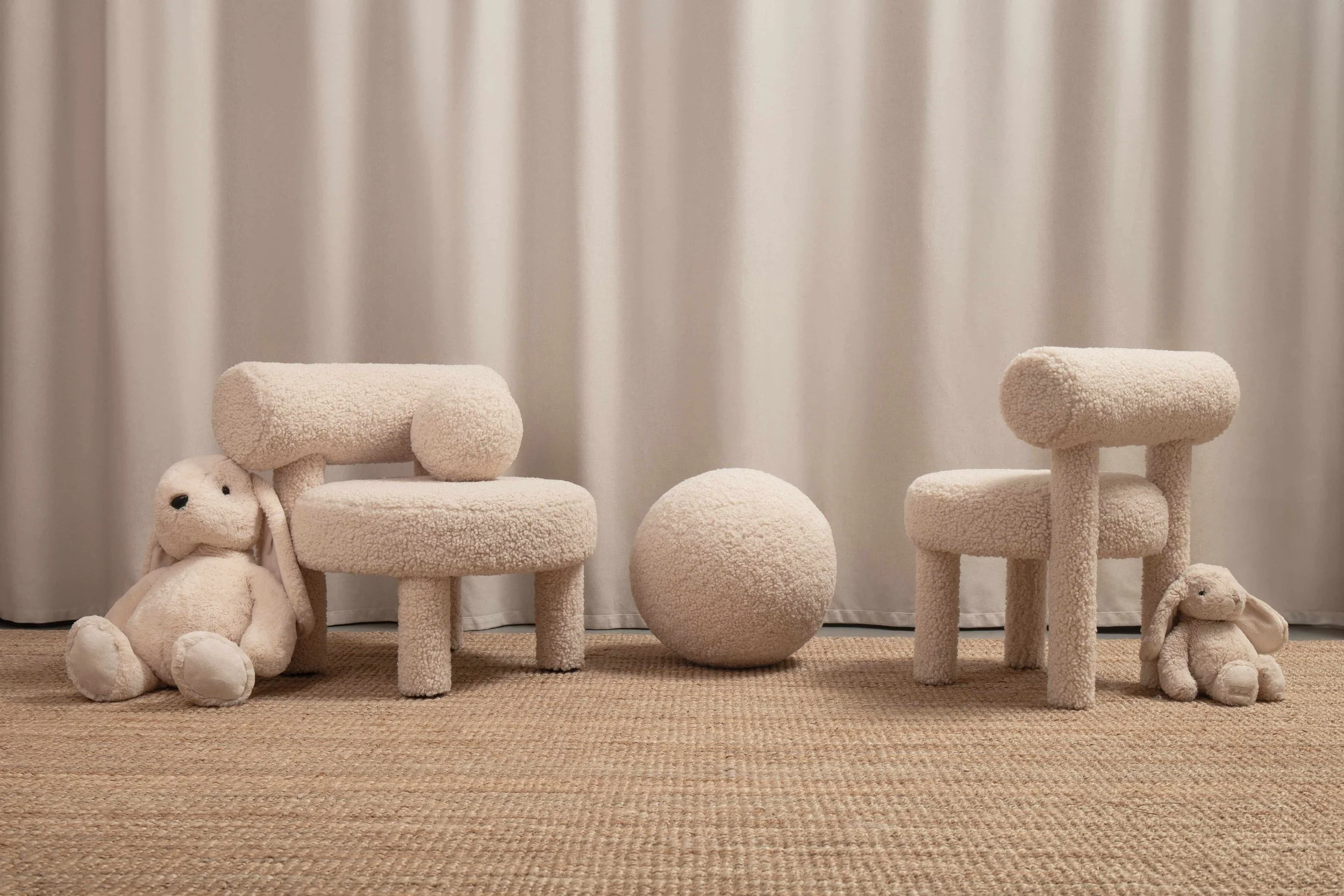 We noted that kids love minimalist design and are always happy to interact with our chairs, and this fact encouraged us to create a miniature version of the Gropius chair. A distinctive silhouette that is sculptural yet comfortable, a wide range of colorful upholstery, and a playful design cater to both kids' and parents' tastes.